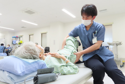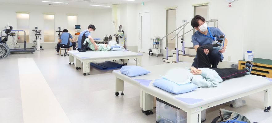 理学療法は主に病気や怪我によって運動機能が低下した状態にある方に対し、運動療法や物理療法などを用いて、自立した日常生活が送れるように支援を行います。そして、質の高いリハビリテーションを提供するために、多岐にわたる疾患に対応できるジェネラリストの育成や、心臓リハビリテーションなど、各疾患に応じたスペシャリストを揃えて、最新のエビデンスに基づいた医療を提供できるよう教育し、体制を整えています。入院後に医学的管理下にある時期から、早期に理学療法を行うために専門的な技術や知識はもちろん、多職種と協働するコミュニケーション能力等が必要になります。そのため、チーム医療の一員としてカンファレンス等の連携を行い、質の高いリハビリテーションを提供できるよう努めてまいります。